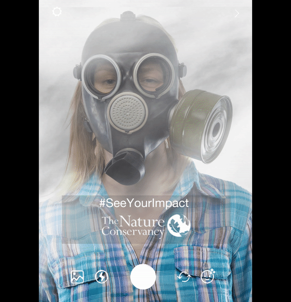 Custom snap filter that places a persons face in a gas mask and pollutes the air around them.